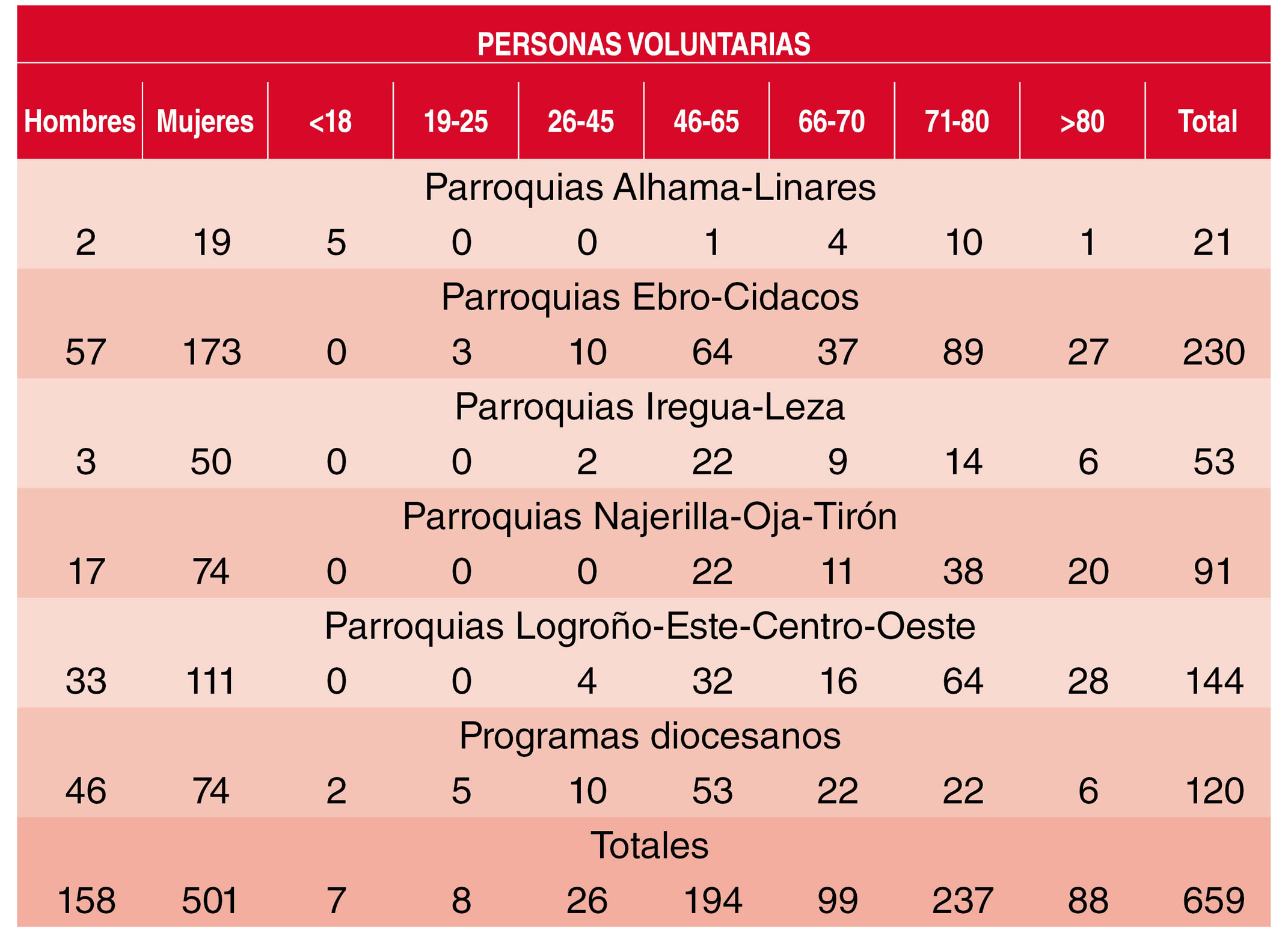 En Cáritas La Rioja contamos en 2022 con 659 personas voluntarias que realizan un servicio desinteresado, libre, gratuito y responsable, en beneficio de la comunidad y de acuerdo con los objetivos y principios de la entidad.